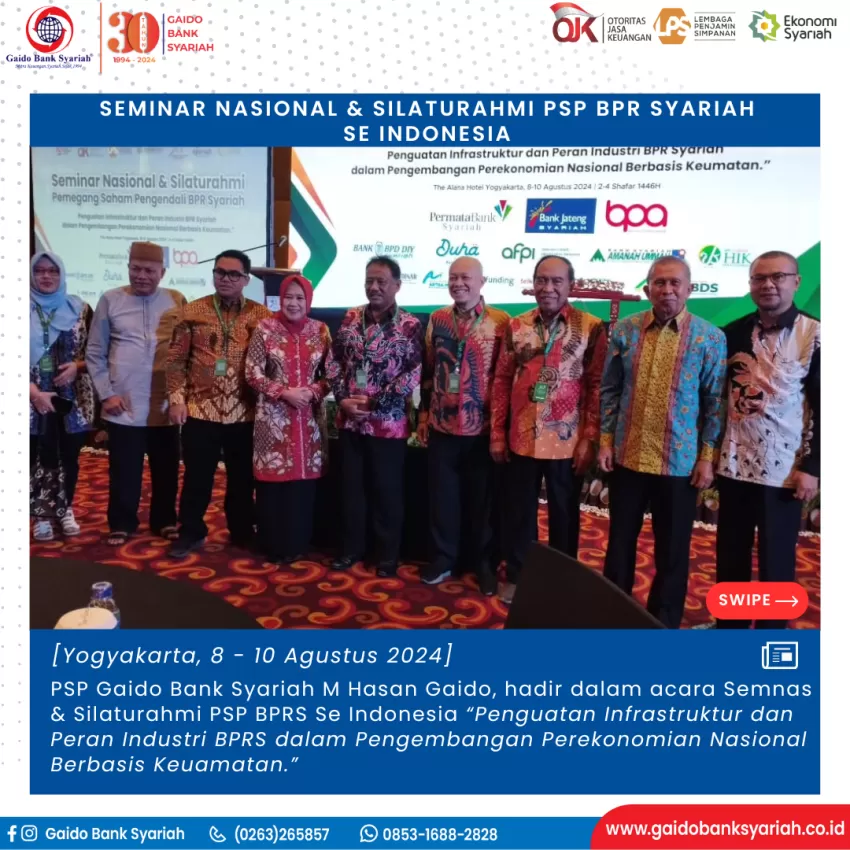 PSP Gaido Bank Syariah Muhammad Hasan Gaido, hadir di acara Seminar Nasional dan Silaturahmi PSP BPR Syariah se Indonesia “Penguatan Infrastruktur dan Peran Industri BPRS dalam Pengembangan Perekonomian Nasional Berbasis Keuamatan.”