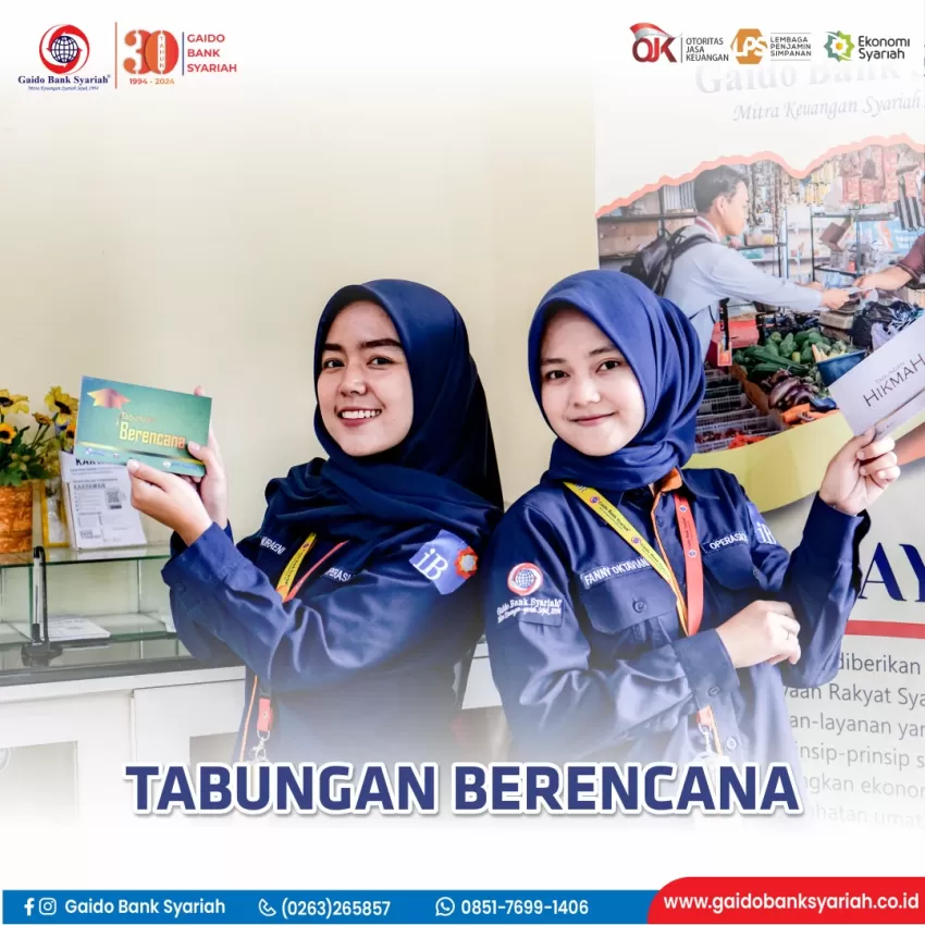 Tabungan Berencana Gaido Bank Syariah merupakan sarana penyimpanan dana bagi anda untuk menjalani hidup yang lebih terencana, tabungan berencana Gaido Bank Syariah ketenangan dan kemudahan pengelolaan keuangan anda.