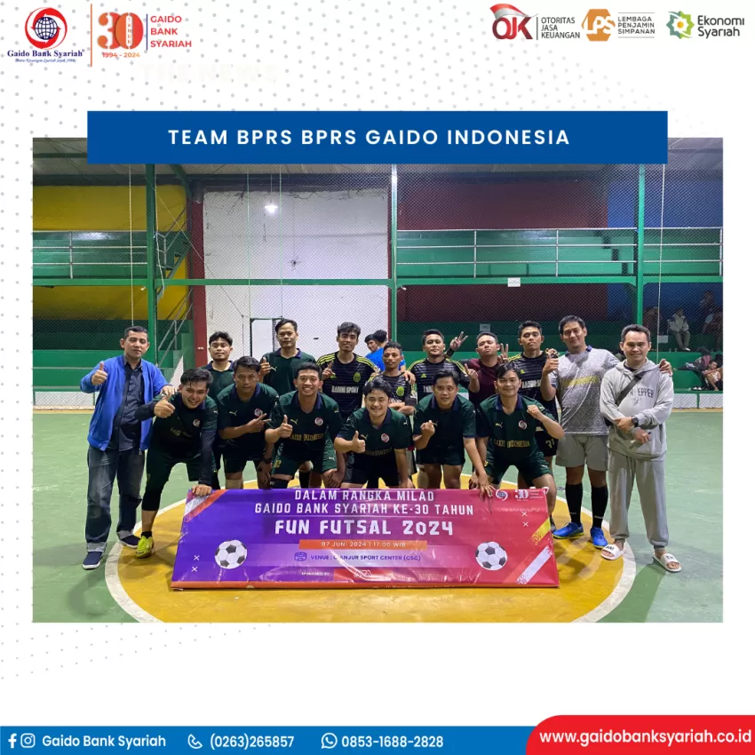 Gaido Bank Syariah merayakan milad yang ke-30 dengan berbagai rangkaian acara, salah satunya sebuah acara yang penuh semangat dan kebersamaan, yaitu Fun Futsal. Acara ini diadakan sebagai bentuk apresiasi terhadap perjalanan panjang bank dalam memberikan pelayanan terbaik kepada masyarakat, serta sebagai wujud komitmen dalam mendukung kegiatan yang mempererat tali silaturahmi antarlembaga keuangan syariah.