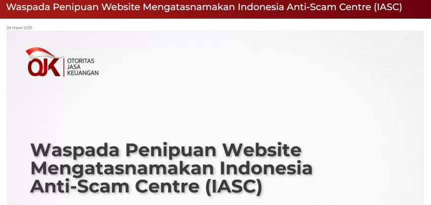 Laporkan penipuan hanya melalui situs resmi IASC: https://iasc.ojk.go.id